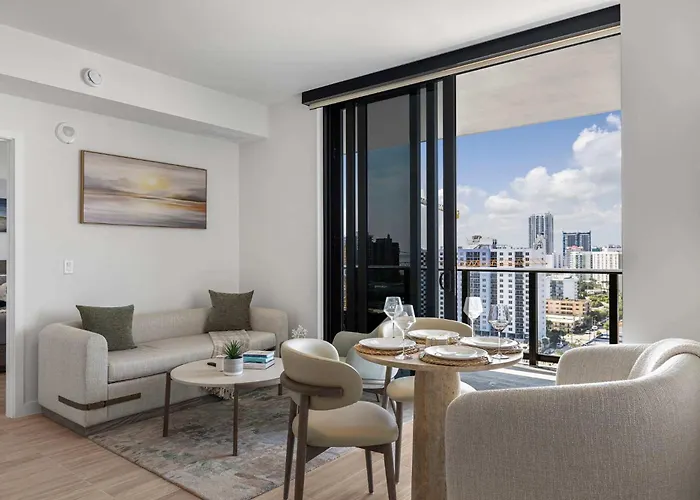 O Chic Miami Retreat Stylish 2Br Gem For 5 Apartamento Miami Beach de 101 m² está situado a 3.8 km de Bal Harbour Beach e dispõe de piscina. Os hóspedes podem usar Wi-Fi tanto para fins de negócios quanto de lazer.